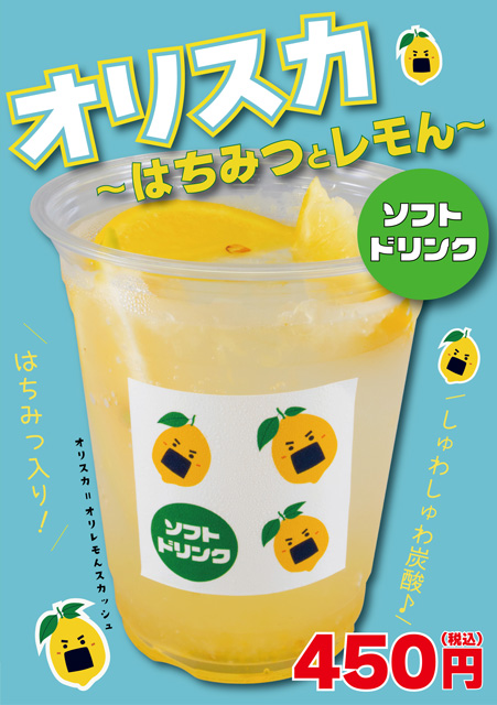 | 商品 | オリレモんサワー ※お酒 ※お車を運転される方や、20歳未満への酒類の提供はお断りしております※ |