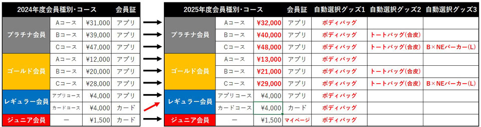 (1)2025年度プラチナ会員・ゴールド会員各コースの価格が改定されております。