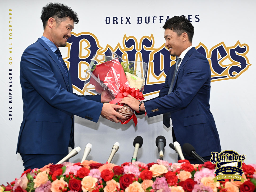 先にTが発表になったんですけど、自分も心の中では決めていたこともあって、Tとは話はしていました。チームが弱い時期にどうやって強くするかということを色々話した仲でもありますし、とてもいい関係だと思います。(T-岡田選手が)いてくれて本当によかったです。低迷期から一緒にやってて、まさか優勝できるとは思っていなかったので2人で喜び合えてよかったです。