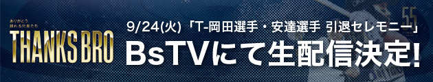 また、引退セレモニーの様子は球団公式YouTubeチャンネル「BsTV」でも生配信いたします。球場にお越しでない皆さまもぜひリアルタイムでご覧ください!見逃さないよう、事前にチャンネル登録をお願いいたします。