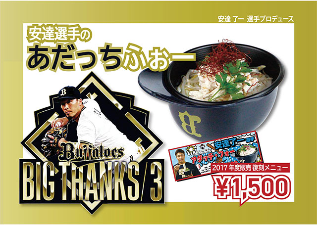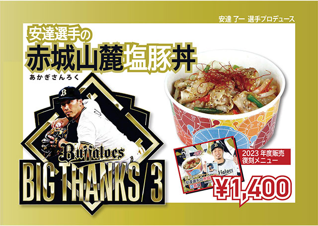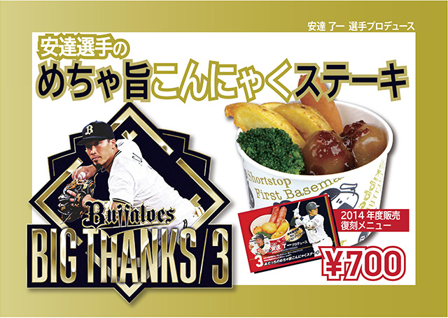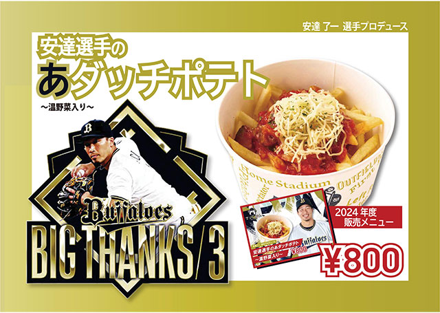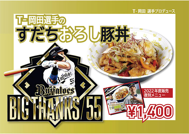 9月21日(土)北海道日本ハム戦から9月24日(火)埼玉西武戦の4試合にて、今シーズンをもって現役を引退するT-岡田選手、安達選手、比嘉投手、小田選手の選手限定メニューを販売いたします。過去に販売した懐かしのメニューなども復刻、4選手のメニューを味わうことができる最後の機会です!