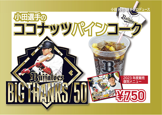 | 商品紹介 | 小田選手が好きなコーラとパイナップルを合わせ、さらにココナッツシロップを加えて南国風のドリンクに仕上げました。 |