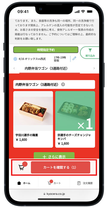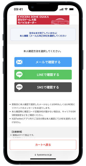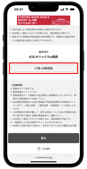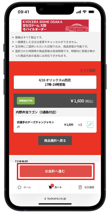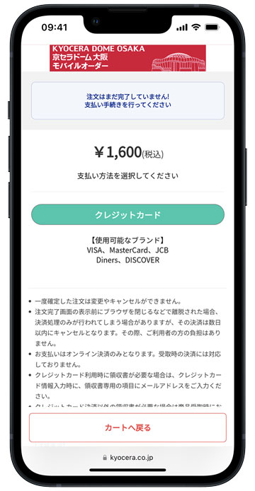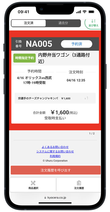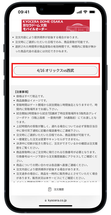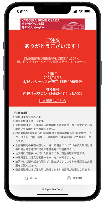 「京セラドーム大阪モバイルオーダー」にアクセス