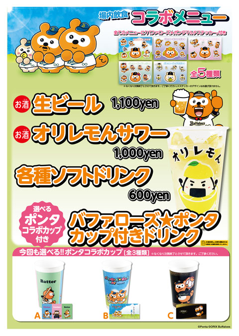 「バファローズ☆ポンタコラボメニュー」ラインナップ