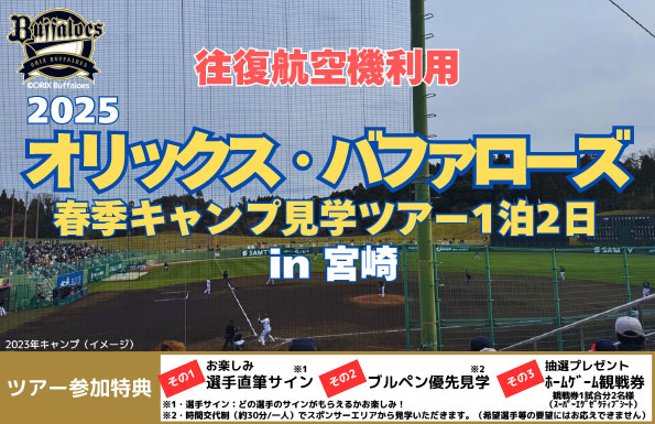 往復航空機を利用した「春季キャンプ見学ツアー in宮崎」が東武トップツアーズ主催のもと、2025年2月の週末に実施されます。