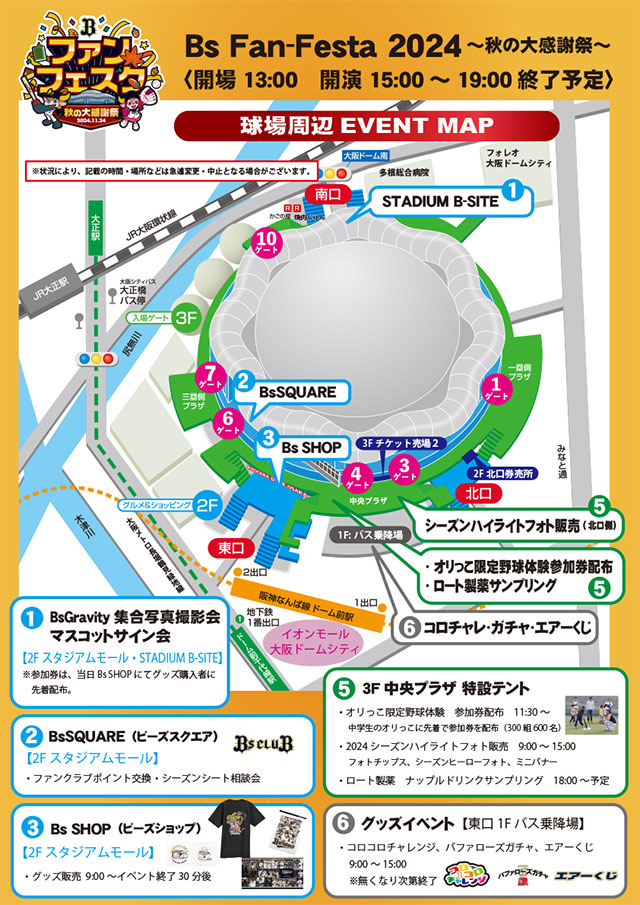 | 開催場所 | 京セラドーム大阪3F 中央プラザ |