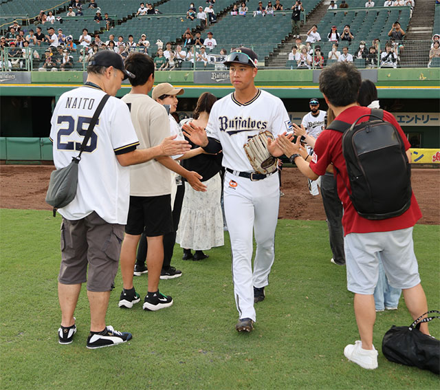 (6)選手の花道!抽選でペア15組 バファローズの選手が守備に着く際、この花道を通ります。