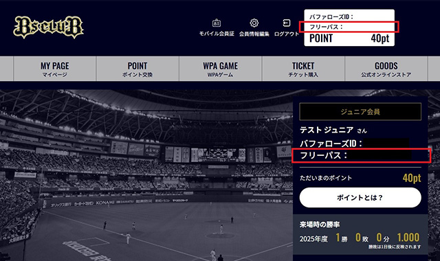 リニューアル前に会員登録されている方のバファローズIDは、2024年度会員証番号と同じになります。