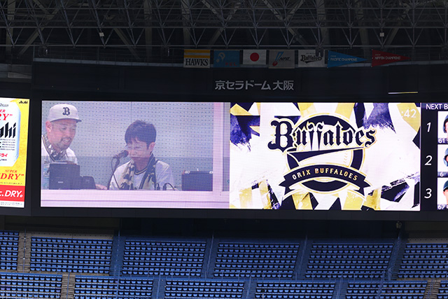 スタジアムMCによるレクチャー後、1回裏から3回裏まで(予定)バファローズ攻撃時の選手コールを体験!