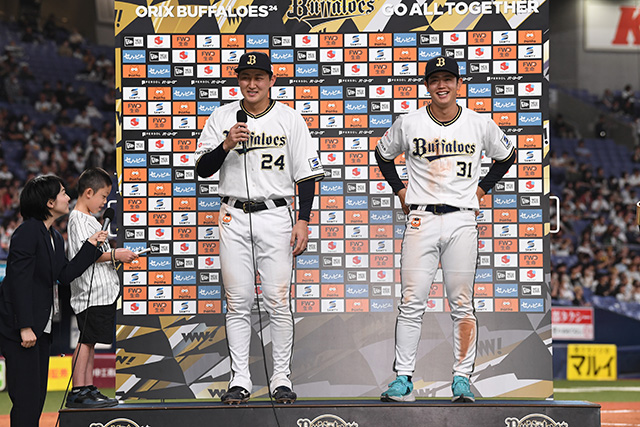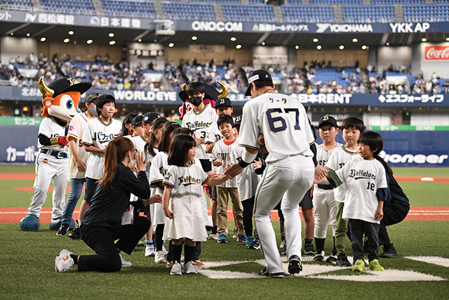 | 募集人数 | 各日20名様/抽選 ※ご当選された方は、必ずバファローズユニフォームやバファローズTシャツを着用の上、ご参加ください。(種類は問いません) ※参加するには「当日の試合観戦チケット」が必要です。 ※ご当選されたご本人のみ参加可能です。ご家族・ご友人の同伴はできません。 |