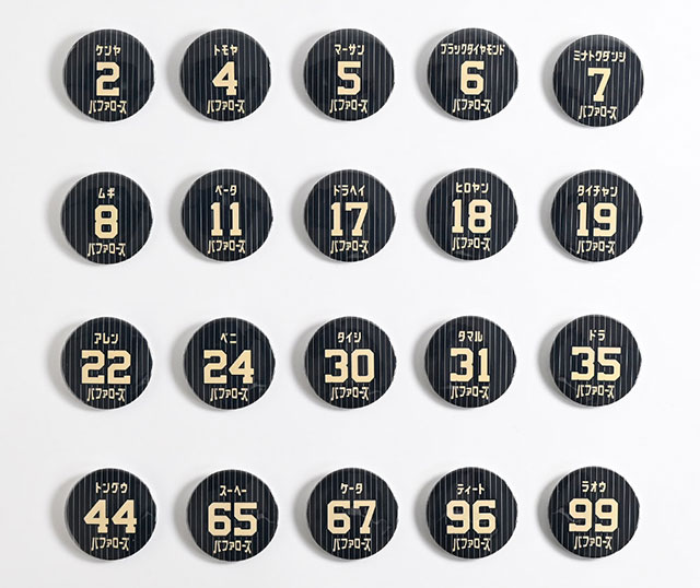 | 種類 | 若月(ケンヤ)・森(トモヤ)・宗(ブラックダイヤモンド)・西川(ミナトクダンシ)・山下(ペータ)・曽谷(ドラヘイ)・宮城(ヒロヤン)・山崎颯(ソーイチ)・紅林(ベニ)・太田(タマル)・中川(ケータ)・ナンバー無し |