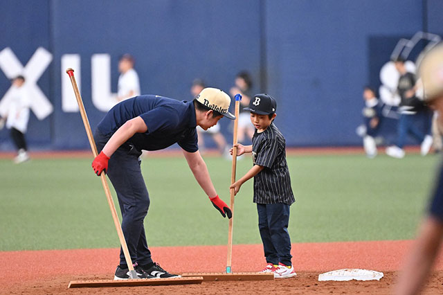 | 募集対象/人数 | 身長140cm以上の小中学生のオリっこ/20名(事前抽選) ※当日の試合観戦チケットを必ずお買い求めください。 ※ご応募には中学生以下のオリっこのBsCLUB会員登録が必要です。 ※当選されたオリっこご本人のみが参加可能です。(参加者以外の方の同伴はできません。) |