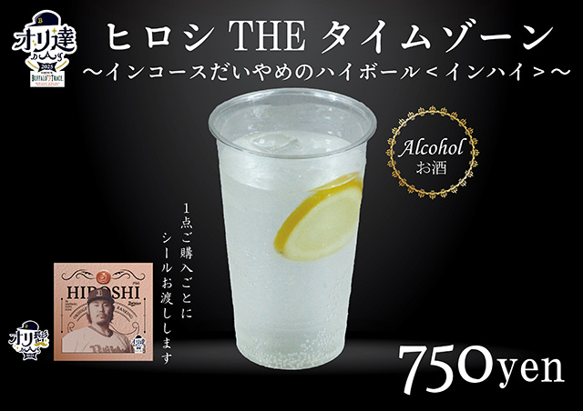| 商品コメント | 平野投手の好きなお酒「ハイボール」と好きなお酒のベース「ウイスキー」をかけあわせたオリ達デー限定「ウイスキーハイボール」です。 |