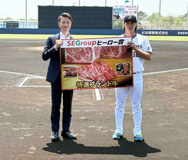 横山投手には、スチールエンジホールディングス株式会社より特選ブランド牛3kgが贈られます。