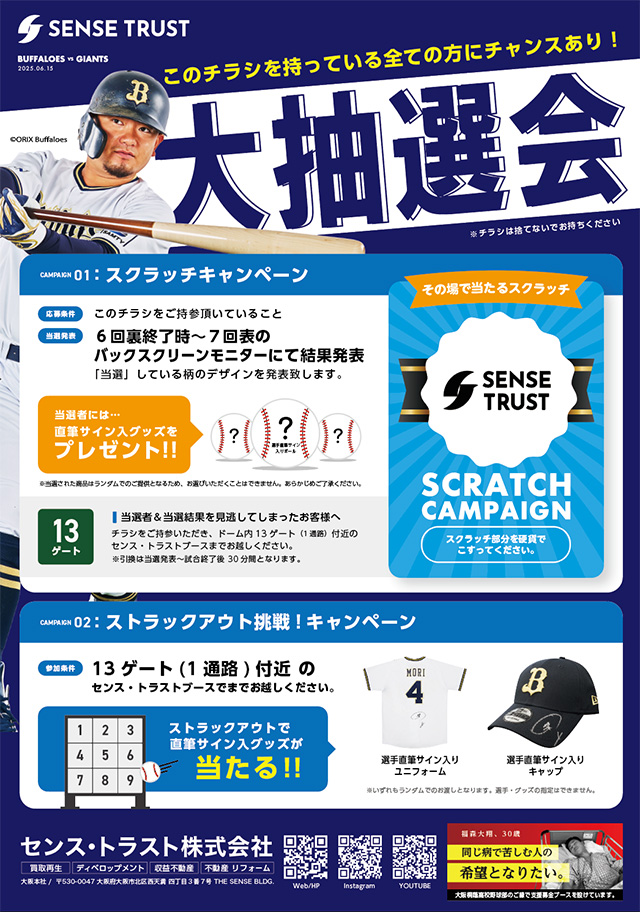 2025年6月15日(日)の読売ジャイアンツ戦は、センス・トラスト株式会社協賛の「SENSE TRUST DAY 2025」として開催いたします。