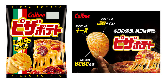 商品テーマ:とろ~りチーズと濃厚ピザ味がくせになる唯一無二の罪な味。 |