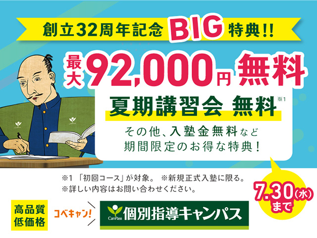 関西を中心に約370校を展開する「コベキャン!」でおなじみの個別指導キャンパスからのお知らせです。