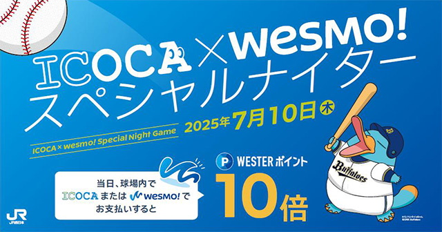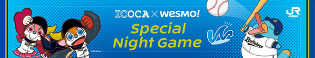7月10日(木)の福岡ソフトバンクホークス戦は、西日本旅客鉄道株式会社がゲームスポンサーとなり「ICOCA×Wesmo!スペシャルナイター」として開催いたします。