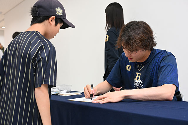 ※ご当選された方は、必ずバファローズユニフォームやバファローズTシャツを着用の上、ご参加ください。(種類は問いません) ※同日に行われるオリっこ大作戦の別イベントとの重複当選はありません。 ※参加者全員にサインをお渡し次第、終了予定。 ※サイン会となりますので、写真撮影や握手を求める行為等は禁止させていただきます。 |