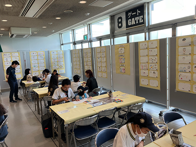 試合前や試合中の時間を使ってオリっこたちがお絵かきに挑戦。「オリっこ大作戦」第1弾に続き、たくさんの力作が集まりました。