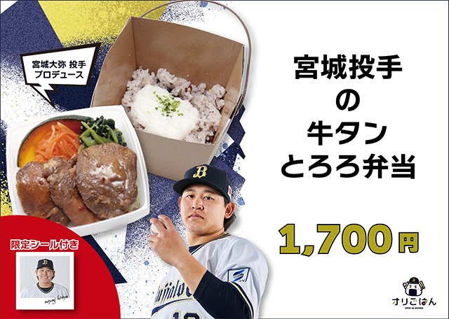 | 商品コメント | 宮城投手の好きな牛タンにトロロをトッピング♪ご飯はビタミンやミネラル、食物繊維が豊富に含まれている十五穀米を使用したお弁当です。嬉しい限定シール付き! ※事前予約はありません。当日販売のみです。 ※数量限定です。 |