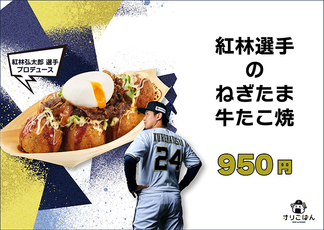 | 商品コメント | 銀だこ名物の「たこ焼」に紅林選手が好物の焼肉をトッピングしたコラボメニューです。 |