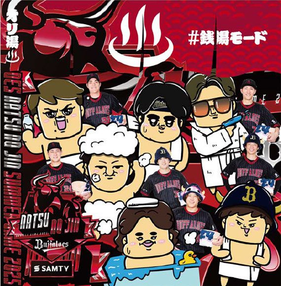 オリックス・バファローズでは、8月ホーム公式戦の計11試合にて夏の恒例イベント「Bs夏の陣2025 supported by SAMTY」を開催いたします。イベント期間中、グラウンド上の選手たちは「#戦闘モード」で、スタンドのファンの皆さんは「#銭湯モード」で共に熱く球場を沸かせます!球場装飾でも戦闘&銭湯モードが登場!さらにオリジナルハリセンの先着配布も!ぜひご来場ください。