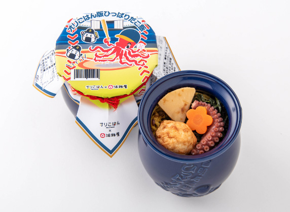 | 商品紹介 | オリごはん版ひっぱりだこ飯 「オリごはん×淡路屋」オリジナルひっぱりだこ飯が完成しました! 蛸壺風のオリジナル陶器とともにお楽しみください。 |