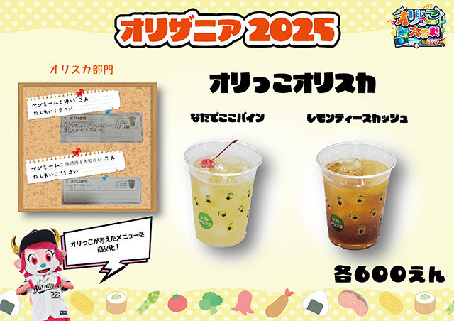 「いてまえドッグ」は1点、「オリスカ」は特別に2点がグランプリに決まり、計3点のメニューは8月3日(日)~17日(日)のBs夏の陣期間中にて限定販売いたします。ご来場の際には、ぜひ「オリっこごはん」もご賞味ください!