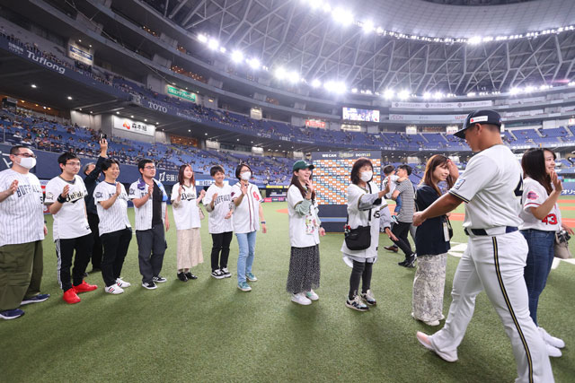 | 当選発表 | ※ご当選された方は、必ずバファローズユニフォームやバファローズTシャツを着用の上、ご参加ください。(種類は問いません) ※ヒールやかかとの高い靴、サンダルではご入場いただけません。 ※グラウンド内では飲食禁止です。 ※待機場所やグラウンド上でのカメラ・ビデオ等の撮影・録音行為は固くお断りいたします。 ※集合時間に遅れますと、イベントに参加できない場合がございます。 ※選手へ握手など他行為を求めることは禁止させていただきます。 ※グラウンドイベントとなりますので、アクセサリーやヘアピンなどは外していただきますようお願いいたします。 ※当日、ドームビジョンや球団SNS、他メディアにて当イベントの様子が掲載・放送される場合がございます。予めご了承の上、ご参加ください。 |