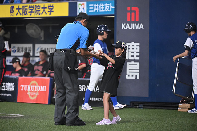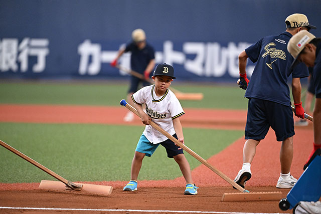 5回裏終了後のイニング間、バファローブル&ベル、BsGravityと一緒にオリっこたちがグラウンドに登場。みんなで元気よくハリセンを叩いて「ハリセンタイム」を盛り上げました。
