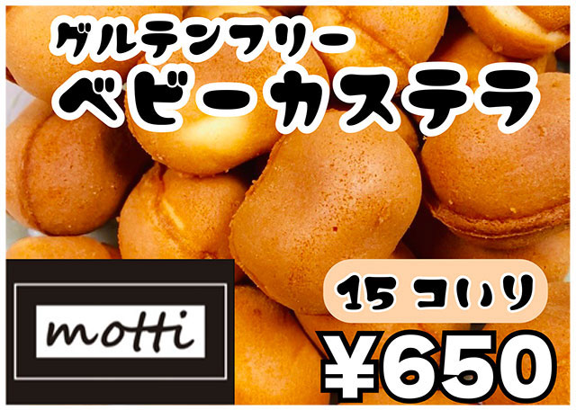 | 商品案内 | 米粉で作ったモチモチとした食感が特徴の「motti」のベビーカステラです! |