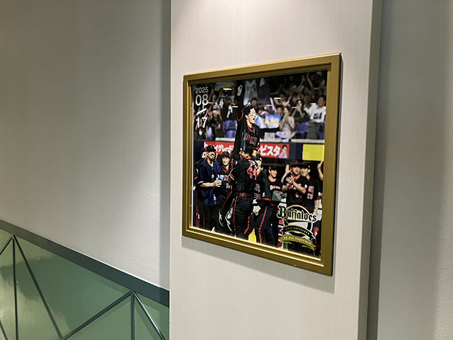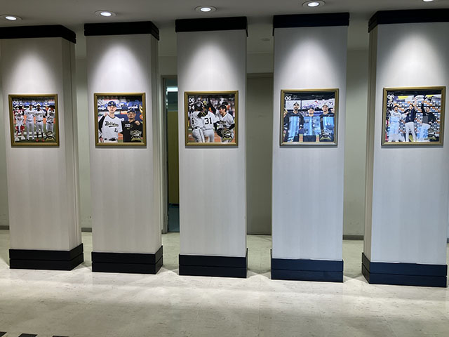 現在、ヒーローインタビューやサヨナラ勝利をおさめた試合写真を厳選し、パネルにして展示しています。ぜひ試合前・試合後にお立ち寄りください♪