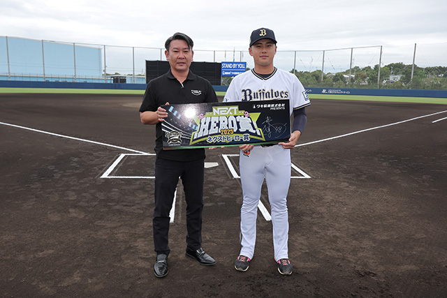 オリックス・バファローズでは、ワキ製薬株式会社提供による、ファーム年間表彰「年間最多安打賞」「年間最多イニング賞」「ネクストヒーロー賞」の選手表彰を9月25日(木)に行いました。