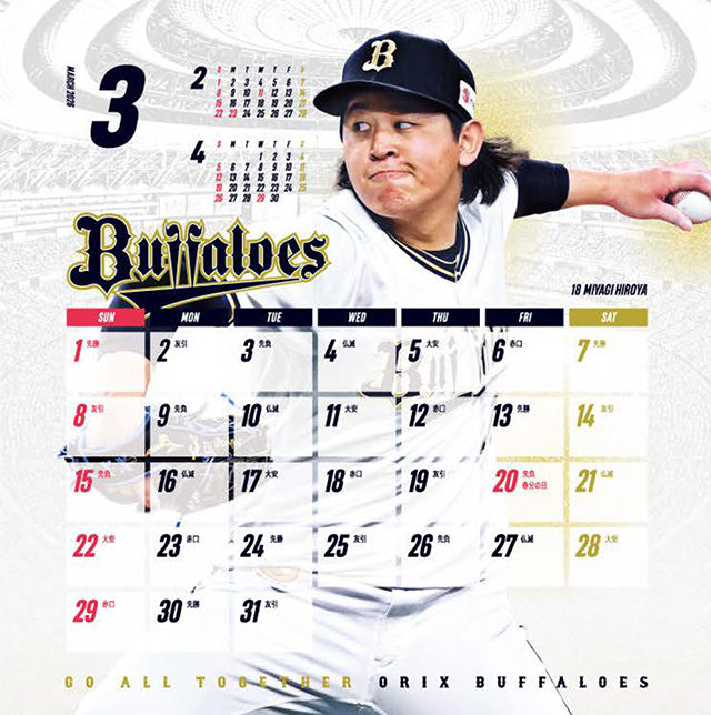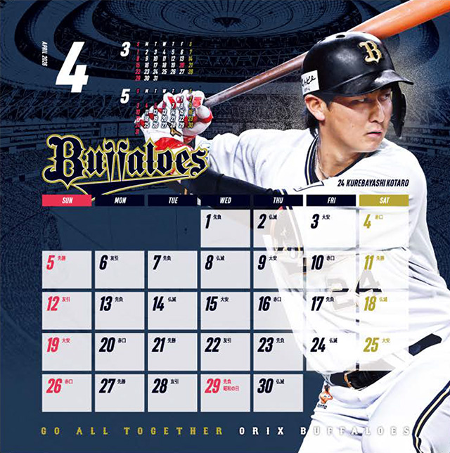 毎年恒例の「オリックス・バファローズ2026年カレンダー」を11月15日(土)より発売いたします。2025年シーズンに大活躍した選手が勢ぞろい!バファローズの選手とともに2026年を過ごしましょう♪