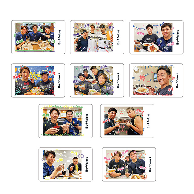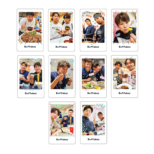 ※Buffaloesもぐもぐタイムクリアカード(シークレット)、Buffaloes2025オフショットカンバッジver.2(シークレット)、Buffaloesぼんち揚、Buffaloesイラストイニシャルアクリルキーホルダー、Buffaloesイラストイニシャルステッカー(シークレット)は、受注販売ではございません。