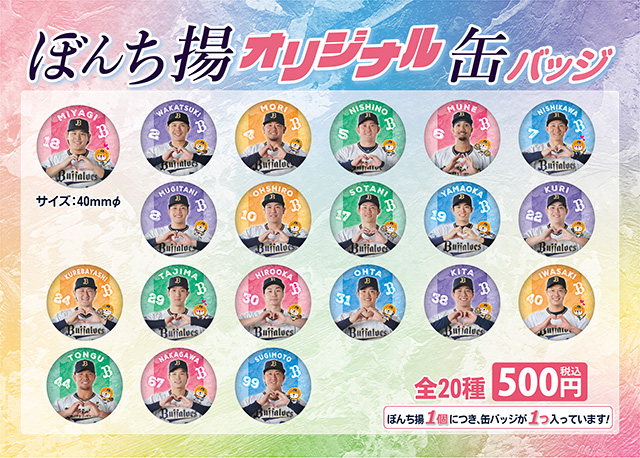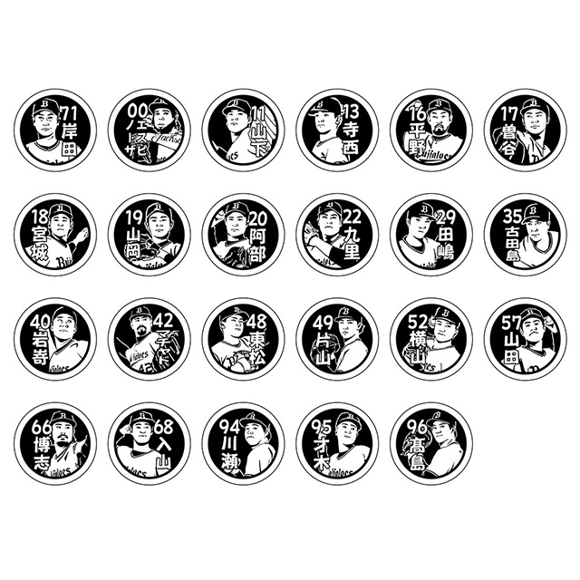 | 種類 | 21種類 (渡部・若月・森・西野・宗・西川・麦谷・野口・大城・紅林・廣岡・太田・福永・杉澤・横山聖・来田・頓宮・山中・大里・中川・杉本) |