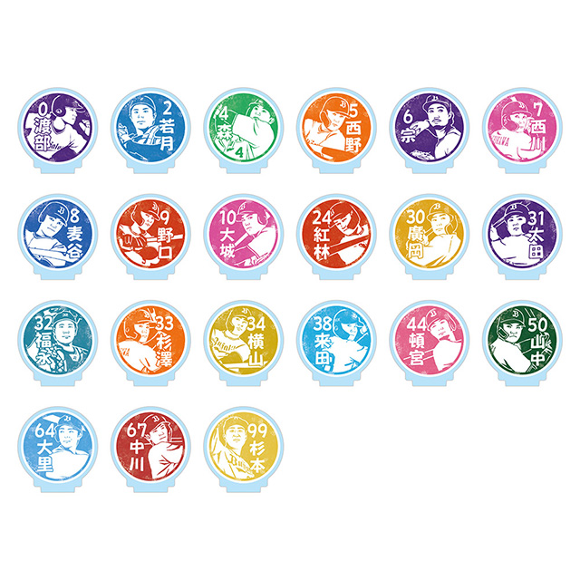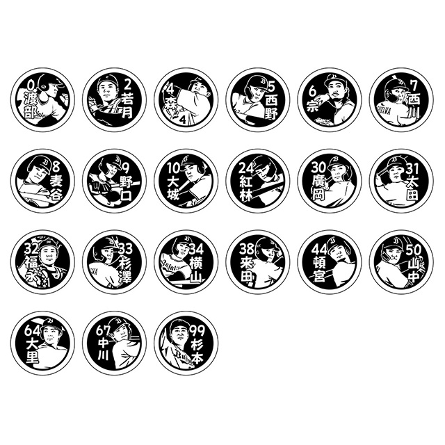 | 種類 | 23種類 (岸田監督・エスピノーザ・山下・寺西・平野・曽谷・宮城・山岡・阿部・九里・田嶋・古田島・岩嵜・マチャド・東松・片山・横山楓・山田・博志・入山・川瀬・才木・高島) |