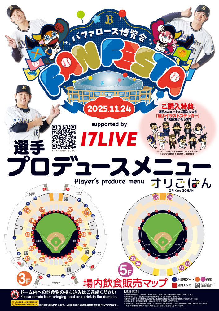 「ぬくぬくワゴン」や「出張!選手食堂」も場内に登場いたします。「ブル&ベルサイン会付きお弁当セット販売」や、「パノラマビアホール GRILL FESTA」のポスターお渡しも!