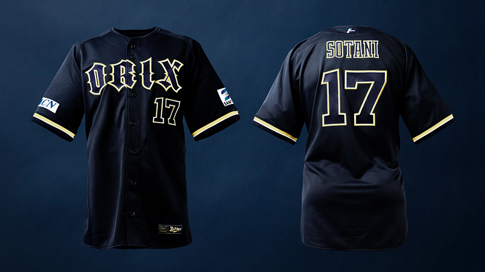 ホームユニフォームと同じく、これまでのデザインを継承しつつ新しい色調を採用。上着のネイビーは一層力強さが際立ちました。パンツにはブルーグレーを採用し、全体をクール且つスタイリッシュにまとめました。胸の「ORIX」ロゴも洗練されたデザインに生まれ変わり、袖とパンツのサイドにはホームユニフォームと同じネイビーとゴールドのラインをあしらっています。