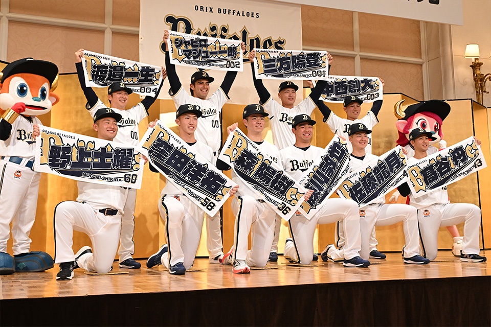11月28日に行われたオリックス・バファローズ新人選手入団発表記者会見では、今年のドラフト会議で指名され仮契約を終えた10名の選手が顔を揃えました。福良淳一GMが「ワクワクプラン」と語ったバファローズの未来を担う新人選手たちを、広報宣伝部が用意したコメント台本とともにご紹介します。