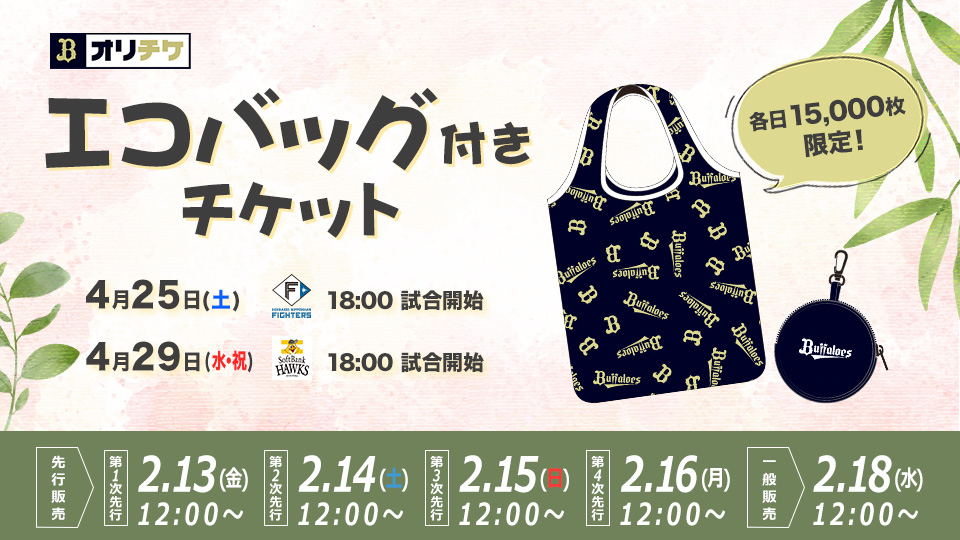 ・バファローズ公式チケットサイト「オリチケ」、京セラドーム大阪北口券売所、チケダスおよびプレイガイドでご購入のチケット