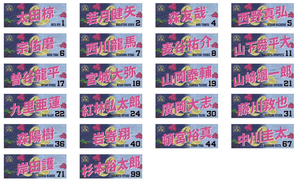 | 種類 | 岸田監督・太田・若月・森友・西野・宗・西川・麦谷・山下・曽谷・宮城・山岡・山崎颯・九里・紅林・廣岡・藤川・森陽・岩嵜・頓宮・中川・杉本 |
