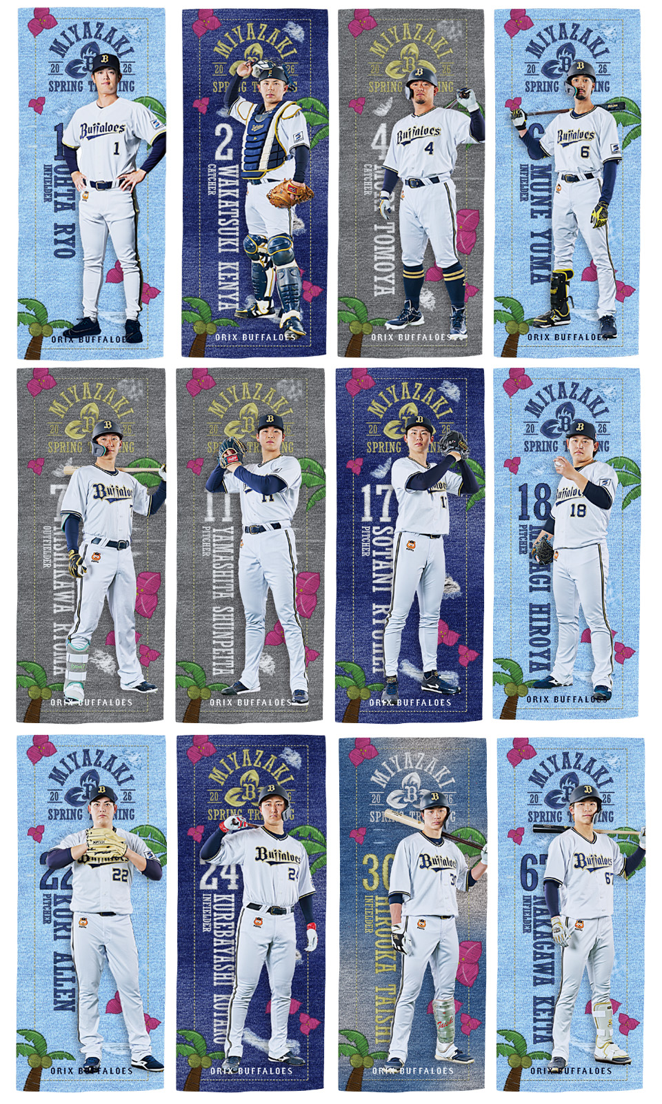 2026年春季キャンプグッズ情報第2弾では、バファローズタウンに並ぶ岸田監督や選手の”のぼりデザイン”を使用したグッズをご紹介!