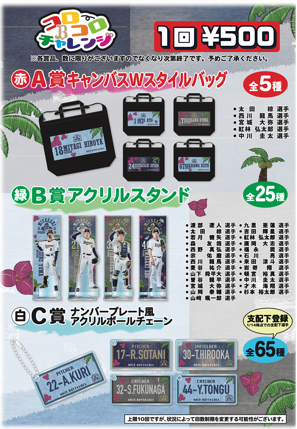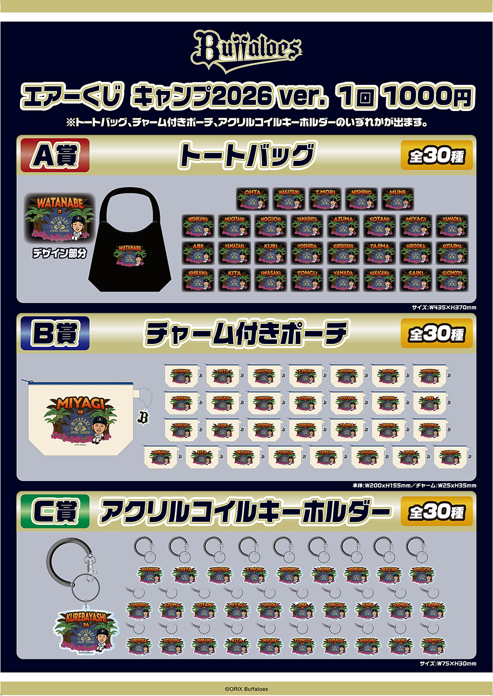 ※A賞・B賞の選手は各日一部選手の中からお選びいただけます。お選びいただける選手・賞品の詳細は、開催日当日に現地にてご確認ください。C賞は選手をお選びいただけません。予めご了承ください。