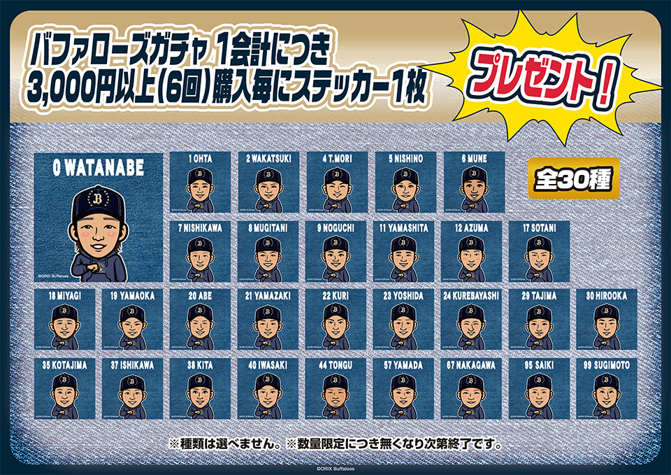 バファローズガチャを1会計につき、6回以上ご購入いただいた方にステッカープレゼント!!