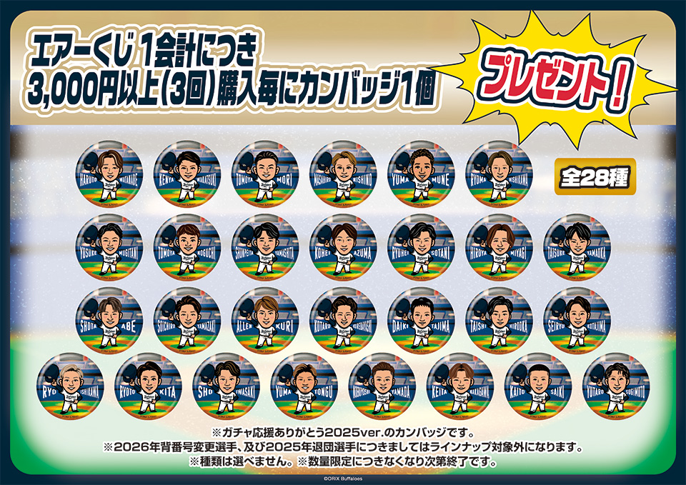 エアーくじを1会計につき、3回以上ご購入いただいた方にカンバッジプレゼント!!!!