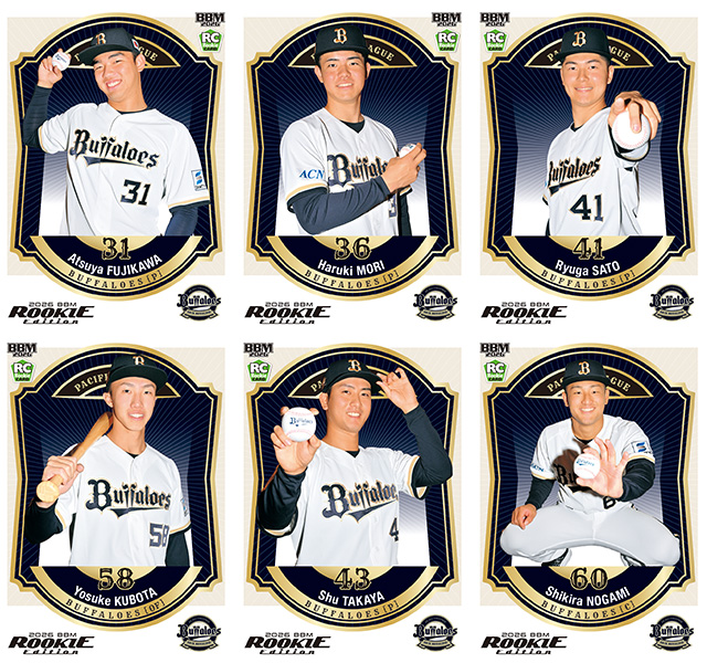 球団直営店(Bs SHOP、B-WAVE)、球団公式オンラインショップにて、「2026 BBMベースボールカード ルーキーエディション」1BOX(15パック入り)購入でバファローズの新人選手10名の直筆サイン色紙を1枚プレゼントします。