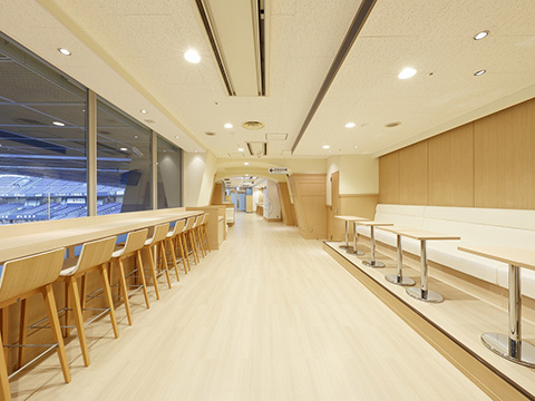 京セラドーム大阪バックネット裏後方に位置する、飲食付シーズンシート契約者限定※1の贅沢な観戦空間です。ラウンジ内では「ビュッフェ料理食べ放題+ソフトドリンク飲み放題」のサービスをご提供いたします。