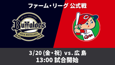 | 3月20日(金・祝) | 広島 | 13:00 | 試合終了まで配信 |